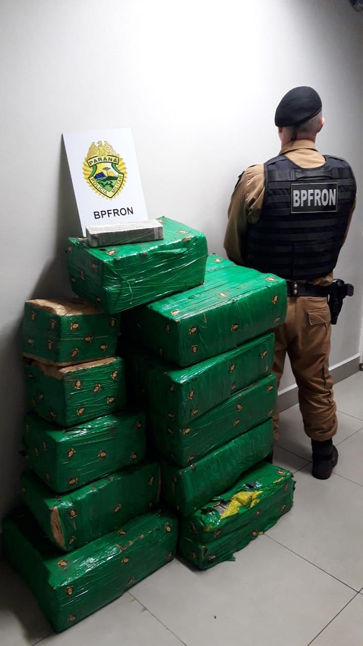 No compartimento de carga do veículo, foi localizado grande quantidade de maconha que, após a pesagem, totalizou 273,800 kg. O veículo e a droga foram encaminhados a cidade de Toledo, para continuidade dos procedimentos legais.