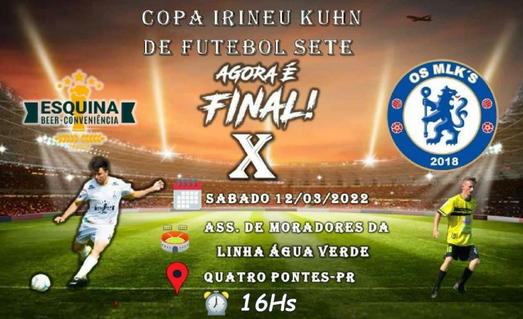 Sábado (12) acontece a final da Copa Irineu Kuhn de Futebol Sete em Quatro Pontes as 16h00 na Associação de Moradores da Linha Água Verde.