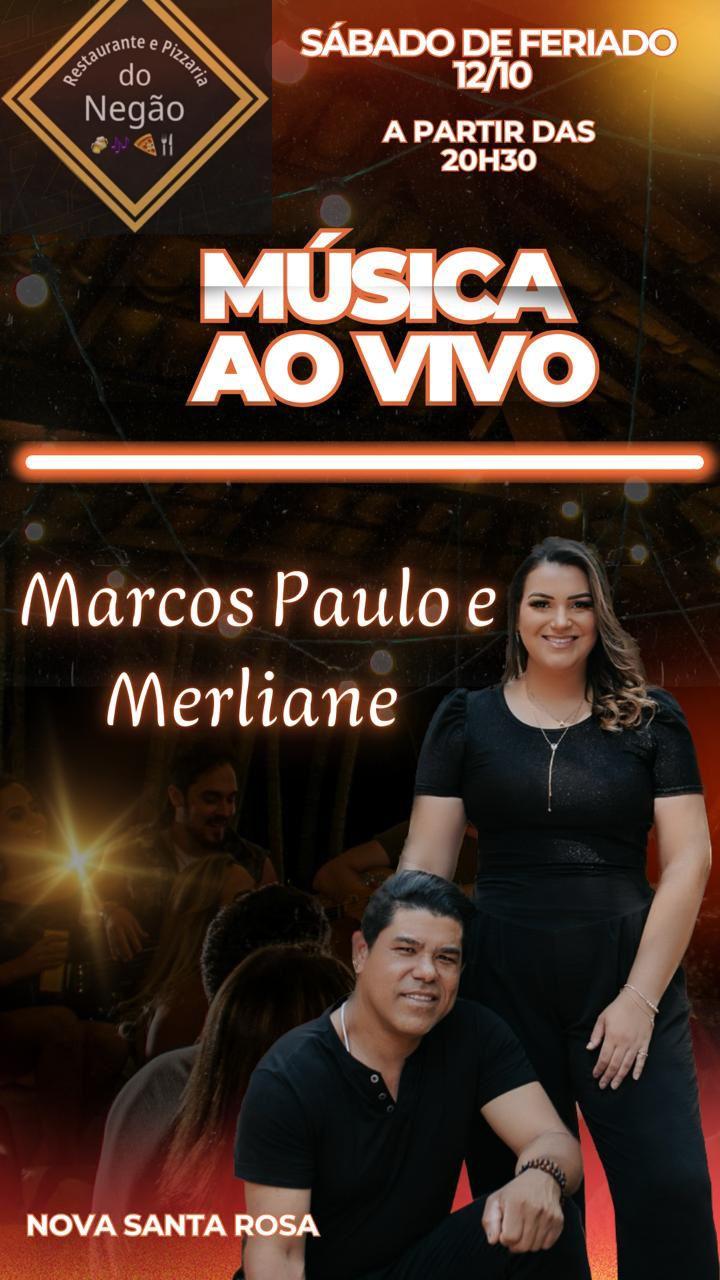 Na noite de sábado, música ao vivo com Marcos Paulo e Merliane.