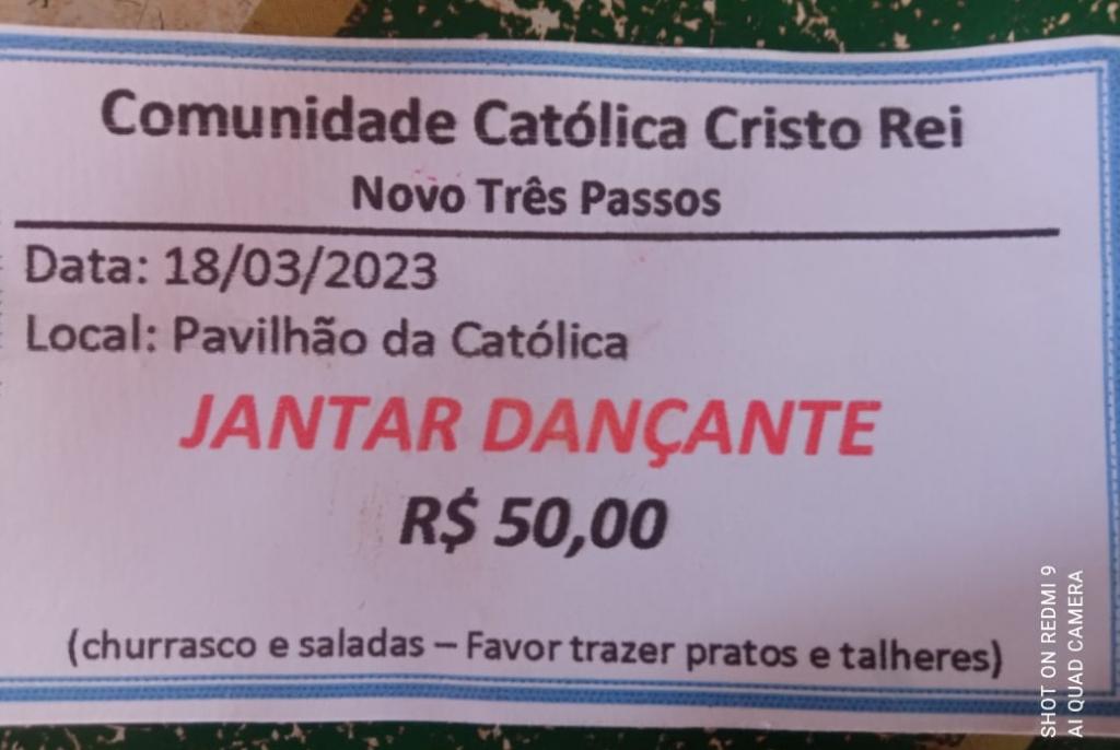 Sábado dia 18 de março a Comunidade Católica Cristo Rei de Novo Três Passos promove Jantar Dançante.