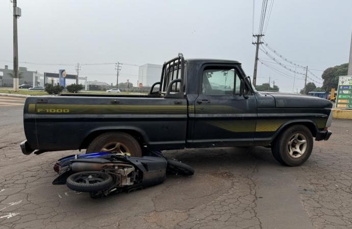 De acordo com informações obtidas no local, uma mulher seguia pela rodovia Angelo Cattani, sentido cidade/PRE, em uma Yamaha Neo. No trevo, a moto foi atingida por uma camionete Ford F-1000, que saía da rodovia pelo trevo e seguia sentido rua José Biesdorf.