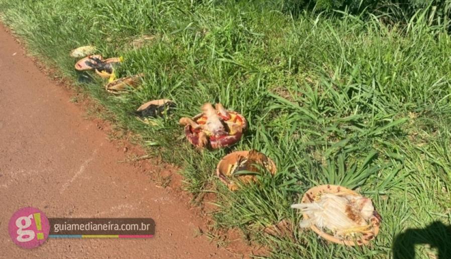 No local, as margens da rodovia BR 277, na saída para Foz do Iguaçu, haviam galinhas mortas, a cabeça e patas de um bode, sangue, charutos e bebidas, dentro de bacias de barro.