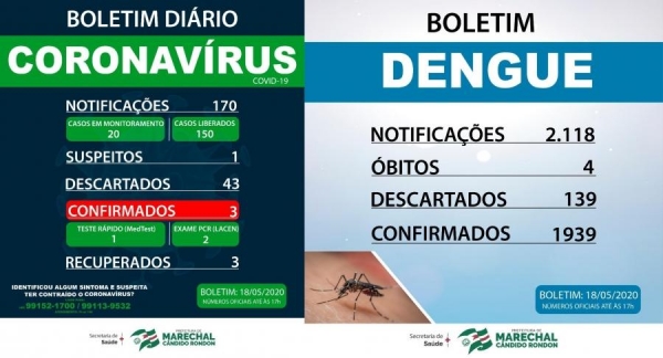Nesta segunda-feira (18), a Secretaria de Saúde de Marechal Cândido Rondon, por meio do Setor de Vigilância Epidemiológica, divulgou mais um boletim com relação aos números do novo coronavírus e dengue. Somente um rondonense tem a suspeita de coronavírus.