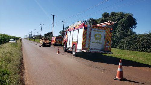A colisão entre uma Saveiro e um Ford Ka ocorreu na rodovia PR-180, na continuação da Avenida Piquiri, na Região Norte de Cascavel.
