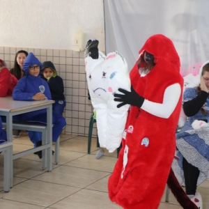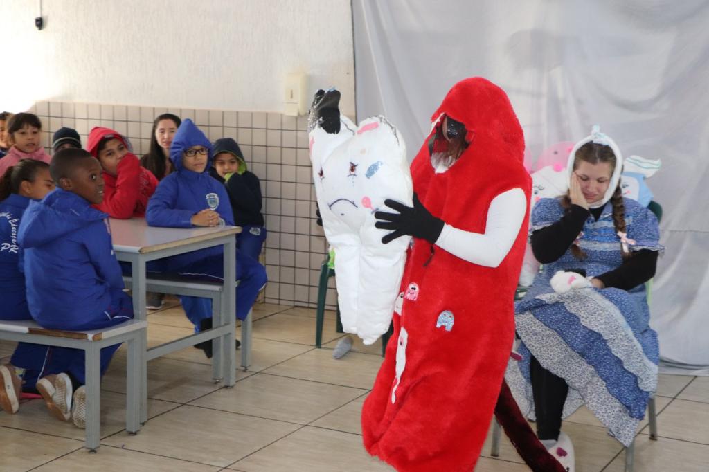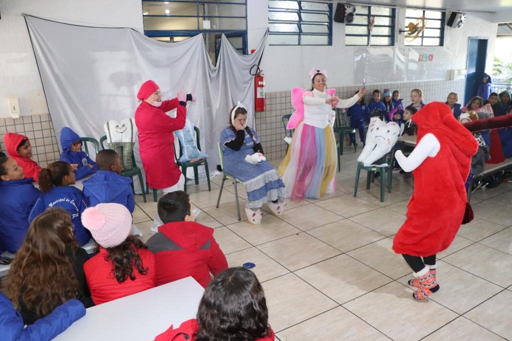 O projeto, denominado "Saúde Bucal em Cena", consiste em uma peça teatral que apresenta de forma divertida e educativa os hábitos essenciais para manter a saúde bucal em dia. As primeiras apresentações ocorreram na Escola Municipal Celino Rocha de Araújo, nesta quarta-feira, dia 29, recebendo grande empolgação dos alunos.