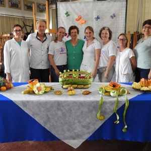 Ao final da palestra, houve aferição da pressão arterial e foi servido coquetel de frutas, o qual foi feito por Sayra Anschau.