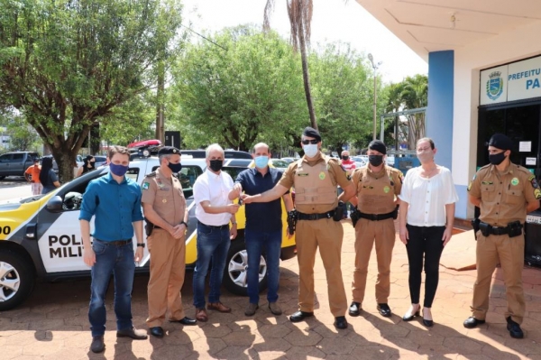 A visita em nosso município nessa manhã de sexta feira 03 de Agosto, para a entrega de mais uma viatura para a Policia Militar, contou com a participação do Secretário de Estado e Deputado, Marcel Micheletto, do Prefeito Luiz Ernesto de Giacometti, Vice Prefeito Felipe Zago, o Comandante do 19° Batalhão da Policia Militar, Tenente Coronel José Osmar Novach, representando a Policia de Palotina, Sargento Novais e representando o Poder Legislativo Municipal, Márcia Berno, estavam presentes também, secretários municipais, chefes de gabinete, Imprensa e a população de Palotina.