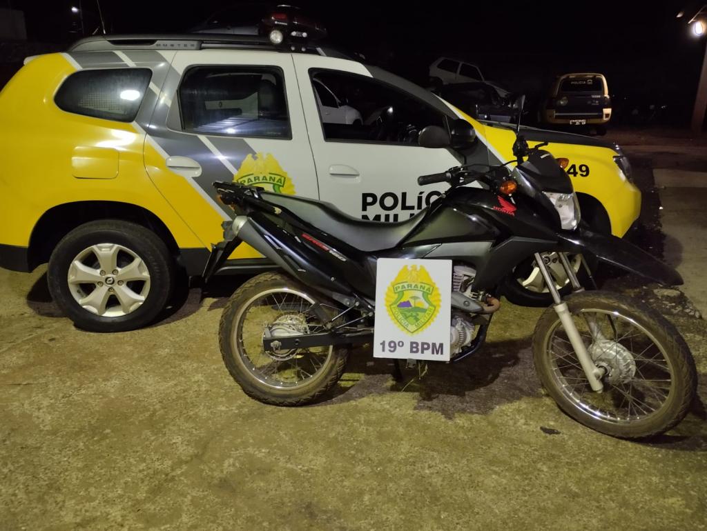 A moto foi roubada ainda na noite de segunda-feira quando dois elementos armados entraram em um bar do distrito e renderam o casal proprietário do estabelecimento, amarrando-os no quarto do casal, na residência que fica anexo ao bar.