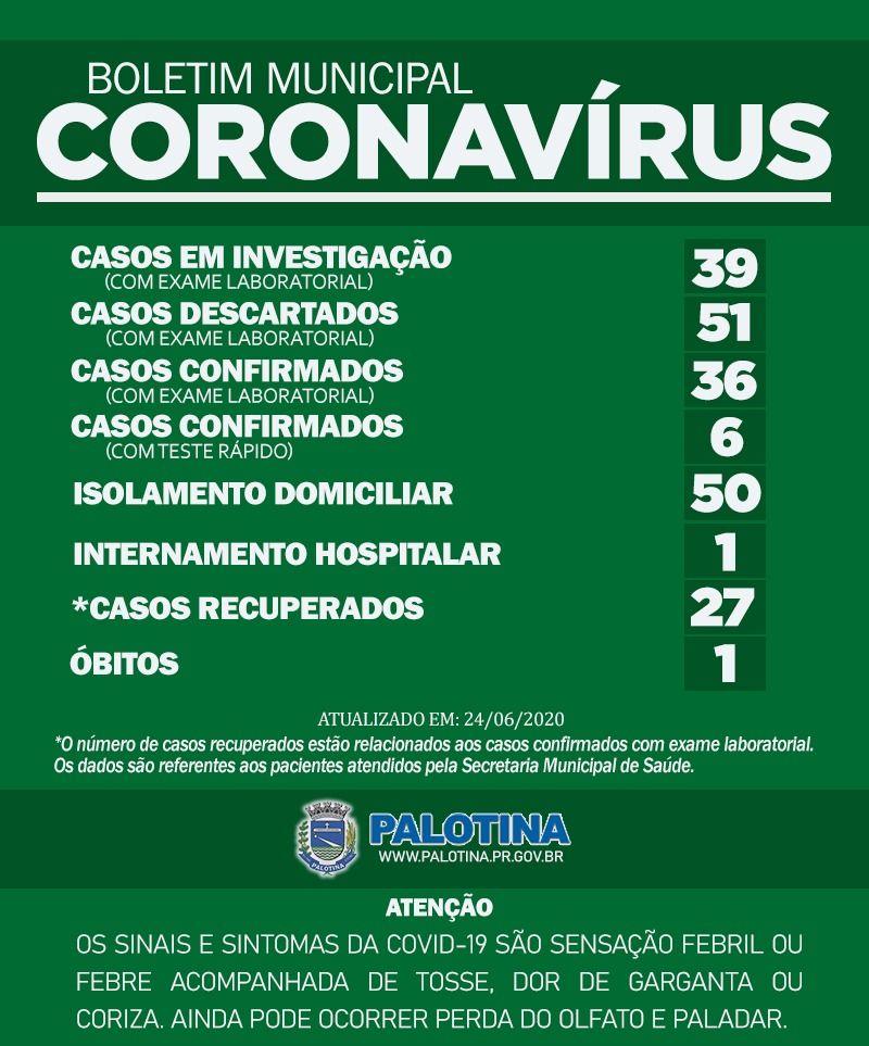 A secretaria municipal de Saúde de Palotina divulgou no final da tarde desta quarta-feira (24), o boletim diário sobre o coronavírus no município. Seis novos casos foram confirmados.