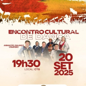 Encerrando a programação, no próximo sábado (20), às 19h30, no CTG Querência da Amizade, acontece o Encontro Cultural de Dança, com animação do Grupo Balanço Campeiro.