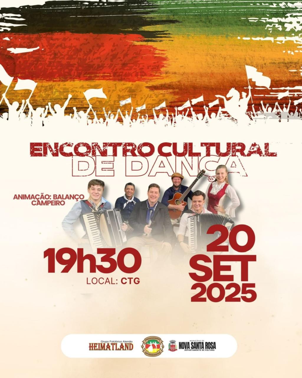 Os eventos são organizados pelo Departamento de Cultura de Nova Santa Rosa e é aberto para toda a comunidade a prestigiar e celebrar a tradição gaúcha.