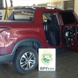Outra ação em Guaíra – PR também na tarde de ontem (08/11) resultou na recuperação de um veículo roubado. Policiais Militares do BPFron realizavam patrulhamento na cidade de Guaíra - PR quando visualizaram um veículo Fiat/Toro de cor vermelha na garagem de uma residência que se encontrava ao abandono. Foi constatado que o veículo é produto de um roubo a residência ocorrido na cidade de Terra Roxa - PR em dezembro de 2017. O veículo foi apreendido e encaminhado aos procedimentos a fim de ser ressarcido o proprietário.