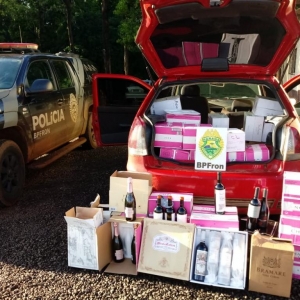 Um veículo carregado com produtos descaminhados foi apreendido em Guaíra – PR na quinta-feira (08/11). Policiais Militares do BPFron realizavam patrulhamento na cidade de Guaíra - PR quando visualizaram um veículo FIAT/Uno de cor vermelha trafegando em uma via. O veículo foi abordado e localizado em seu interior 14 volumes de produtos descaminhados oriundos do Paraguai. Os produtos, veículo, condutor e passageiro foram encaminhados aos procedimentos legais cabíveis.