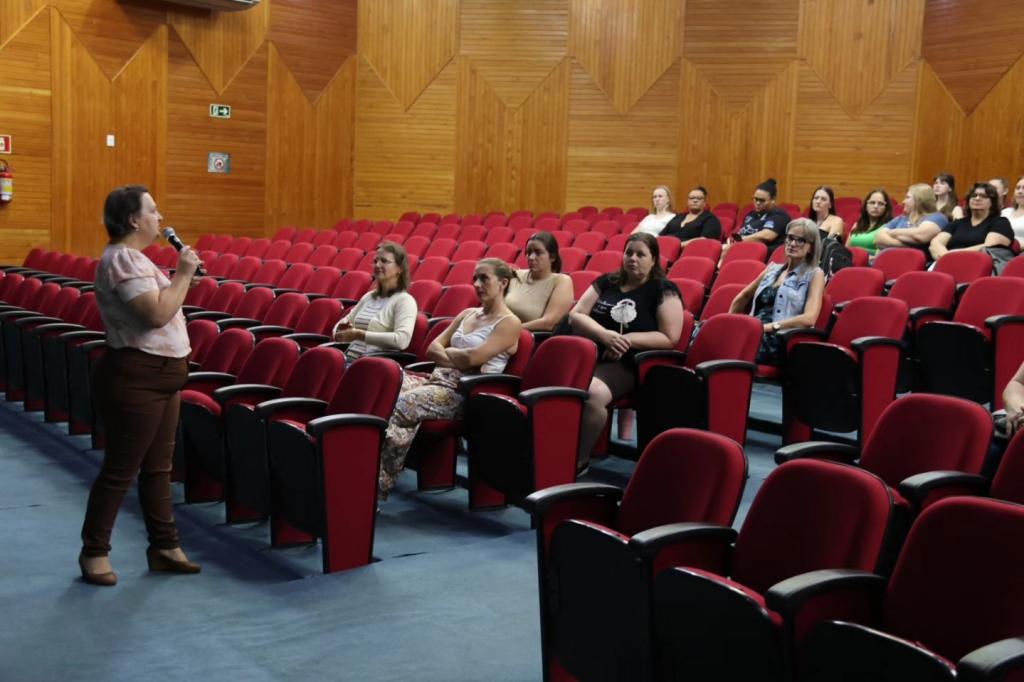 Na manhã desta terça-feira (03), as atividades continuaram em diferentes locais do município. No Teatro Municipal Gustavo Fischer, professores do Ensino Fundamental participam do Estudo do Referencial Curricular Municipal, com foco na área de Matemática.