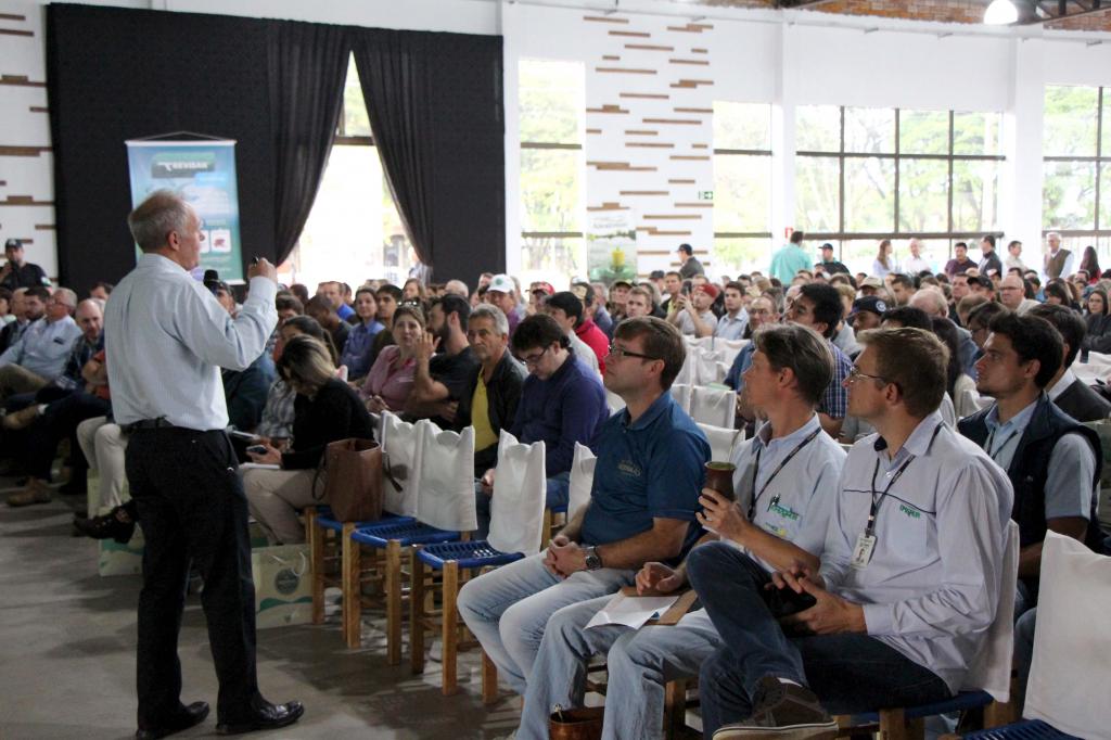 A primeira palestra abordou o Sistema de Integração de Peixe da Cooperativa Agroindustrial C.Vale, que foi apresentado pelo engenheiro agrônomo responsável pelo Departamento de Peixes da cooperativa, Flávio Oscar Paulert.