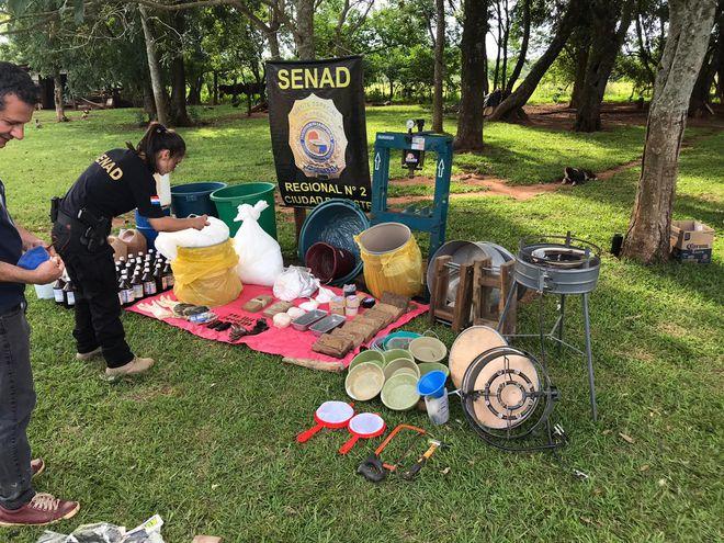 Segundo dados do SENAD, o laboratório foi localizado em uma área rural de Mingá Guazú e continhas vários quilos de cocaína já processada e insumos químicos, duas pessoas foram presas na ação policial.