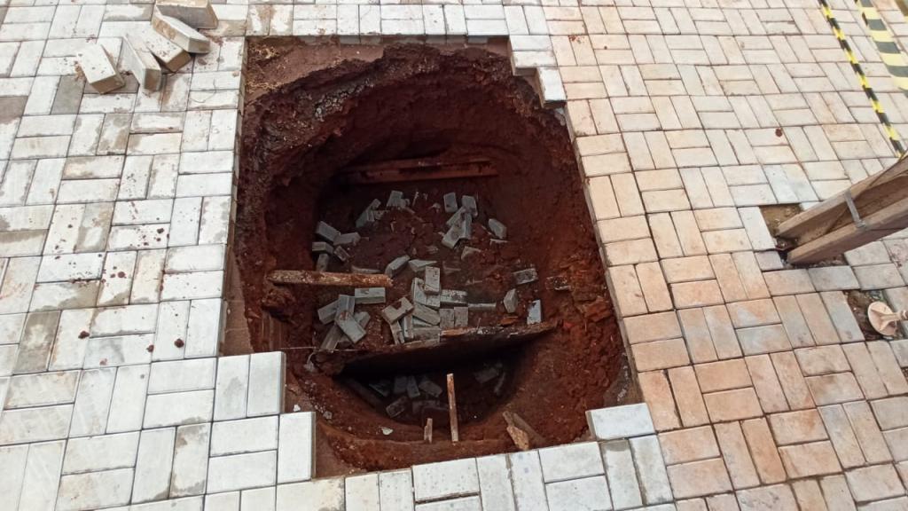A mulher saía de uma festa de aniversário e estava caminhando pela calçada quando repentinamente um buraco de aproximadamente dois metros de diâmetro e dois metros de profundidade se abriu na calçada e ela caiu, com ela estava seu bisneto de 5 anos que também caiu.