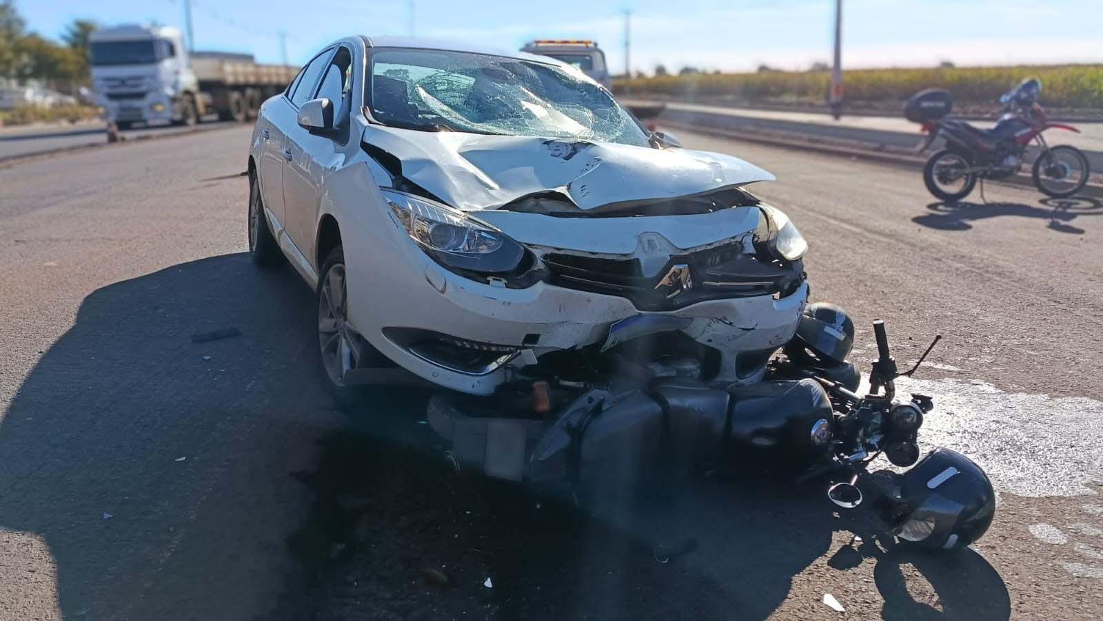 O primeiro caso ocorreu por volta das 12h30 na Avenida Egídio Jerônimo Munareto, região do Jardim Panorama. Um Renault Fluence colidiu com uma motocicleta Honda CG Titan 150, ocupada por um homem e uma mulher. Segundo o motorista do carro, a moto cruzou repentinamente à sua frente. Os dois ocupantes da moto foram socorridos com ferimentos leve (mulher) e moderado (homem). A moto foi arrastada e ficou prensada na frente do carro.