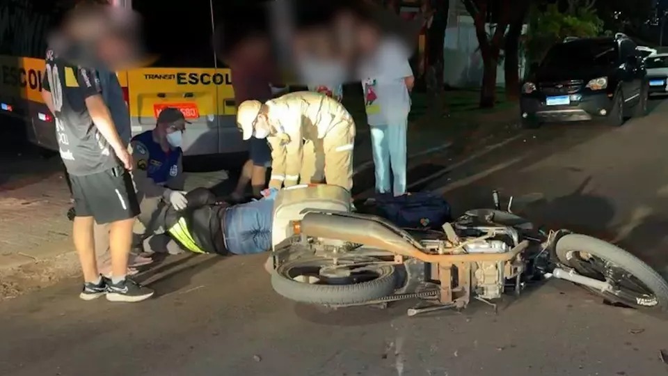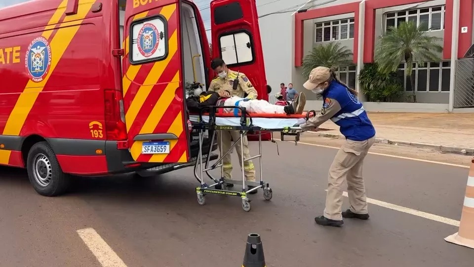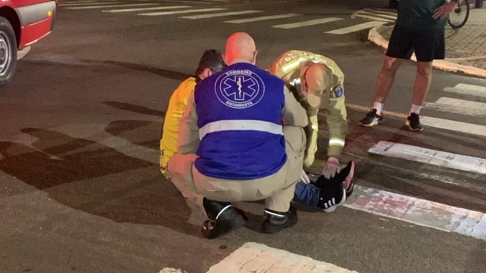 Na sequência, um Ford Fiesta e uma Honda Biz bateram no cruzamento das ruas Áustria e Turim. Com a força do impacto, a moto ficou presa no para-choque do automóvel. A condutora da Biz, uma mulher de 33 anos, sofreu suspeita de fraturas em joelho e fêmur esquerdo, além de laceração grande no joelho esquerdo.