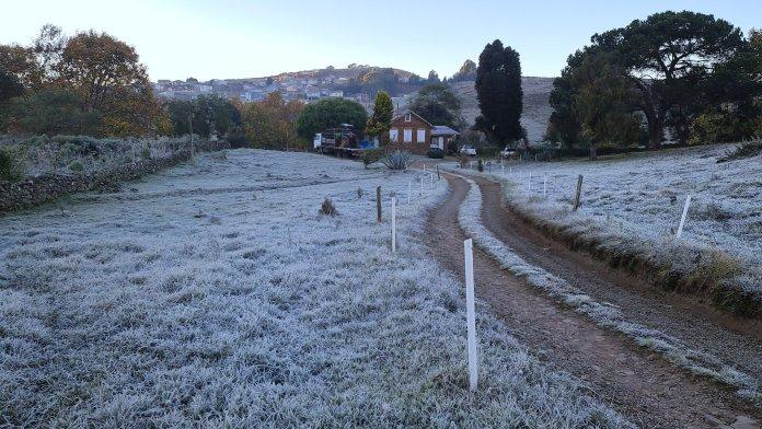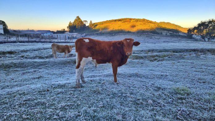 O frio extremo, em pleno outono provocou paisagens exuberantes na Serra Catarinense nesta quarta-feira (28), principalmente no vale do Caminhos da Neve e na área central de São Joaquim onde uma estação padronizada chegou a atingir a marca de -6.4ºC no Bairro Jardim Bandeira em uma área anexa ao centro da cidade.