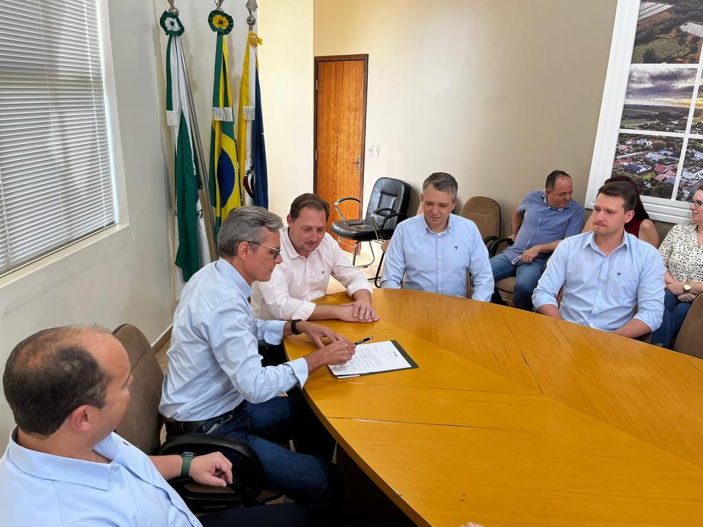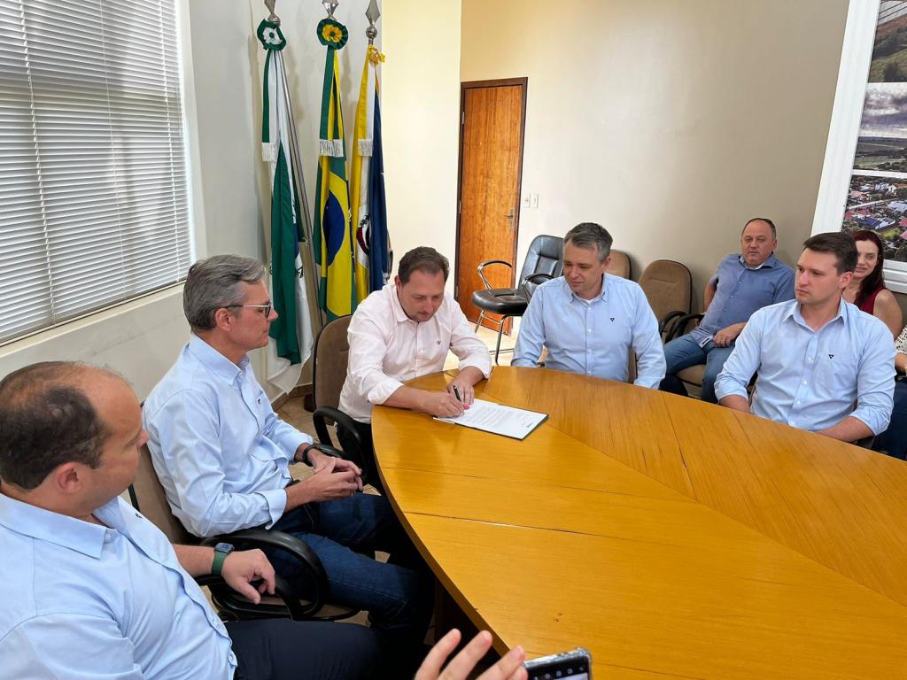 Foi assinado o protocolo de intensão entre as autoridades para a instalação das dependências da agência de número dez do Sicoob que deve ser inaugurada em dezembro deste ano.
