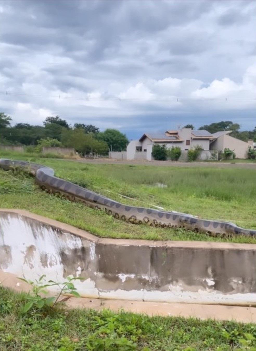 Uma sucuri, de aproximadamente 6 metros de comprimento, surpreendeu moradores do bairro Solar dos Lagos, na tarde desse sábado (11), em Bonito (MS) – a 279 km de Campo Grande. A serpente gigante surgiu em uma lagoa do bairro e deu algumas voltas por terrenos da região.