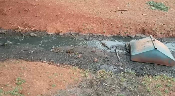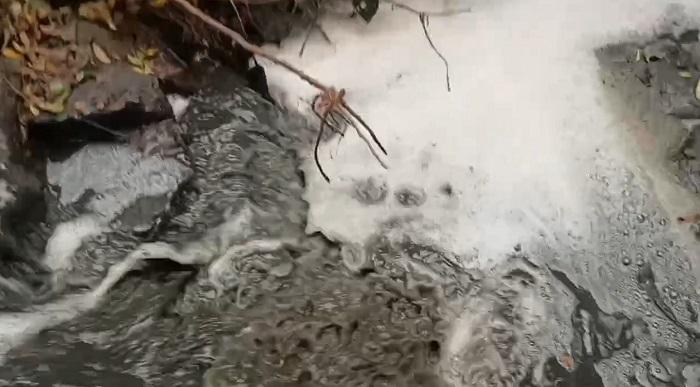 A prática irregular resultou em uma grave contaminação do corpo d’água, que apresentou coloração escura, turva, espuma e odor forte, comprometendo a qualidade da água e afetando os usuários a jusante.