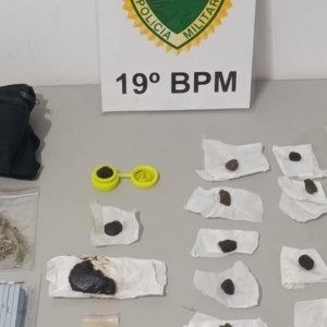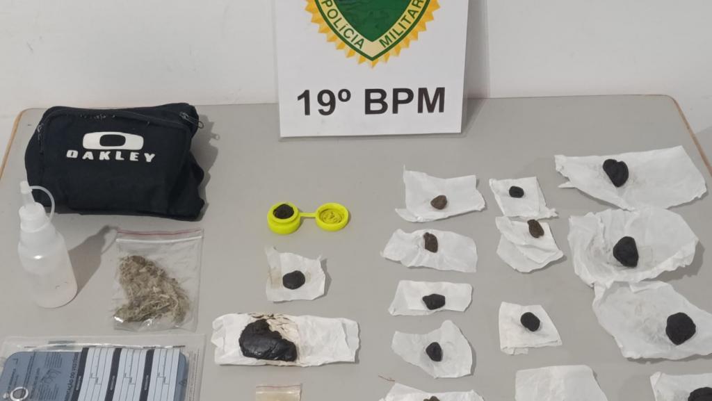 Com a chegada da equipe policial, o suspeito foi localizado e abordado nas proximidades do estabelecimento. Durante a revista pessoal, foram encontrados entorpecentes em posse dele, além de indícios de que utilizava uma motocicleta para se deslocar até o local.