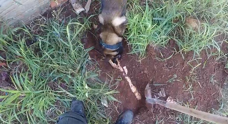 O cão policial Raio foi fundamental para a localização precisa dos entorpecentes, inclusive em pontos ocultos do imóvel, como um cano de esgoto na área externa da residência do suspeito, situada nas proximidades da via de acesso ao aterro municipal da cidade.