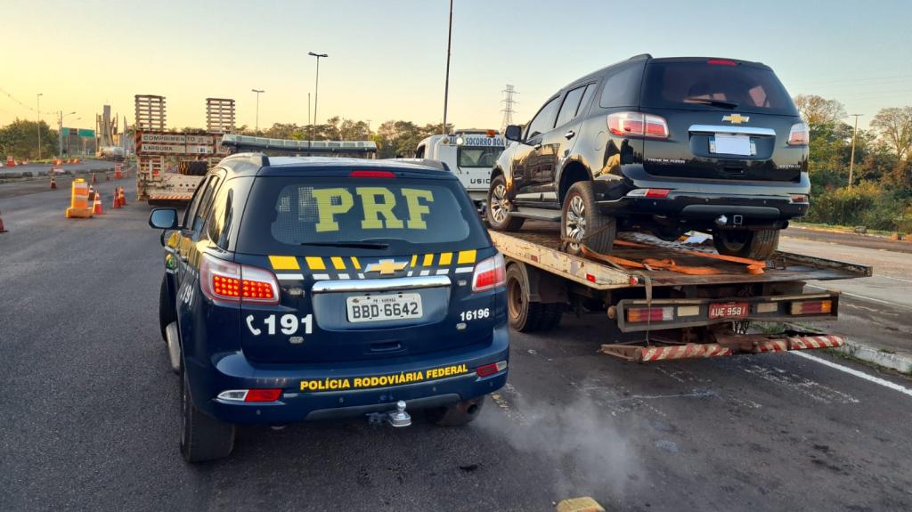 Os policiais foram até o local e constataram que a camionete estava com o eixo dianteiro direito quebrado, o que impediu seu deslocamento, o condutor já havia se evadido.