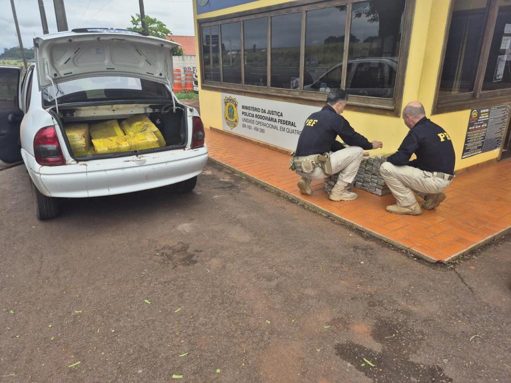 A Polícia Rodoviária Federal (PRF) apreendeu quase 300 quilos de maconha nesta quinta-feira (22), na BR-163, em Marechal Cândido Rondon, após abordagem a um veículo com registro de furto.