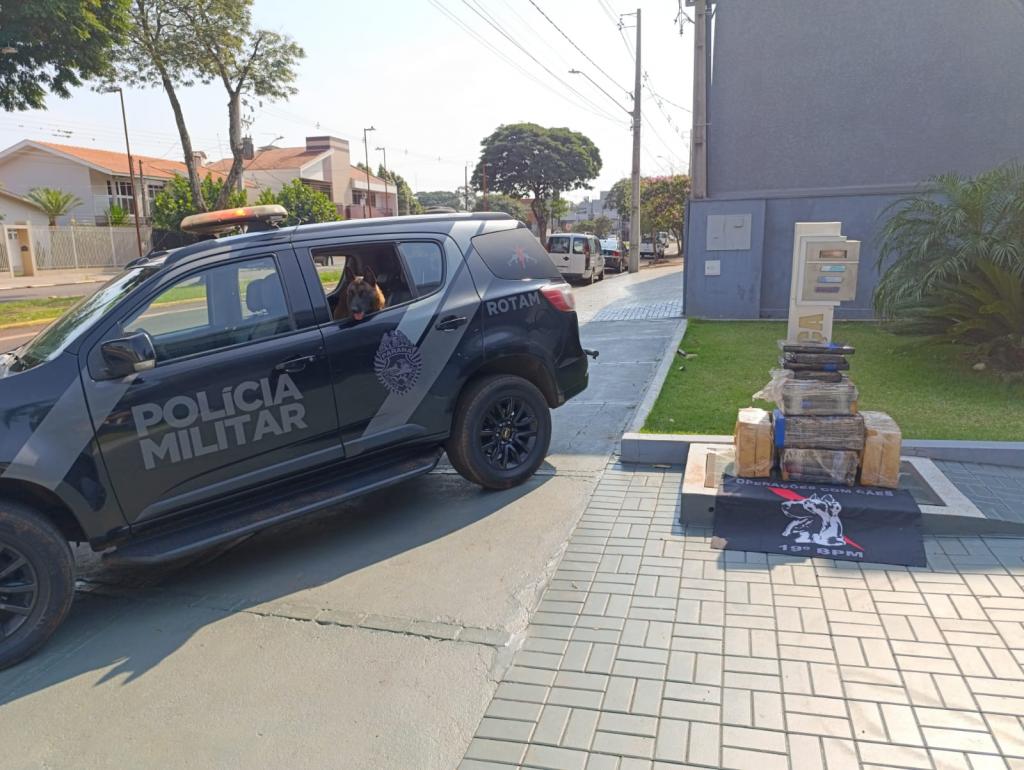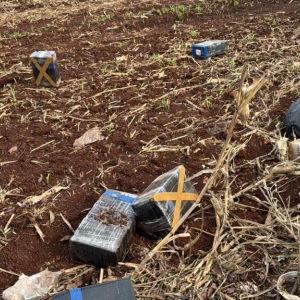 A ROTAM - Operação com Cães de Toledo recebeu informações, no final da manhã desta quarta-feira (31), que na rodovia federal BR 467, entre as cidades de Toledo e Cascavel, possivelmente teriam alguns tabletes de maconha abandonados em uma área de plantação de milho recém colhido.