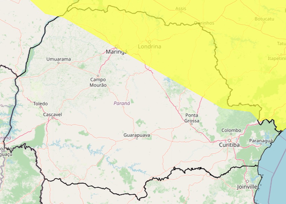 Veja, abaixo, a previsão do tempo para as principais cidades paranaenses, segundo o Simepar: