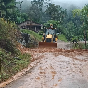 Em Piratuba, uma encosta desmoronou sobre residências na cidade. Não há informações sobre feridos ou desabrigados.
