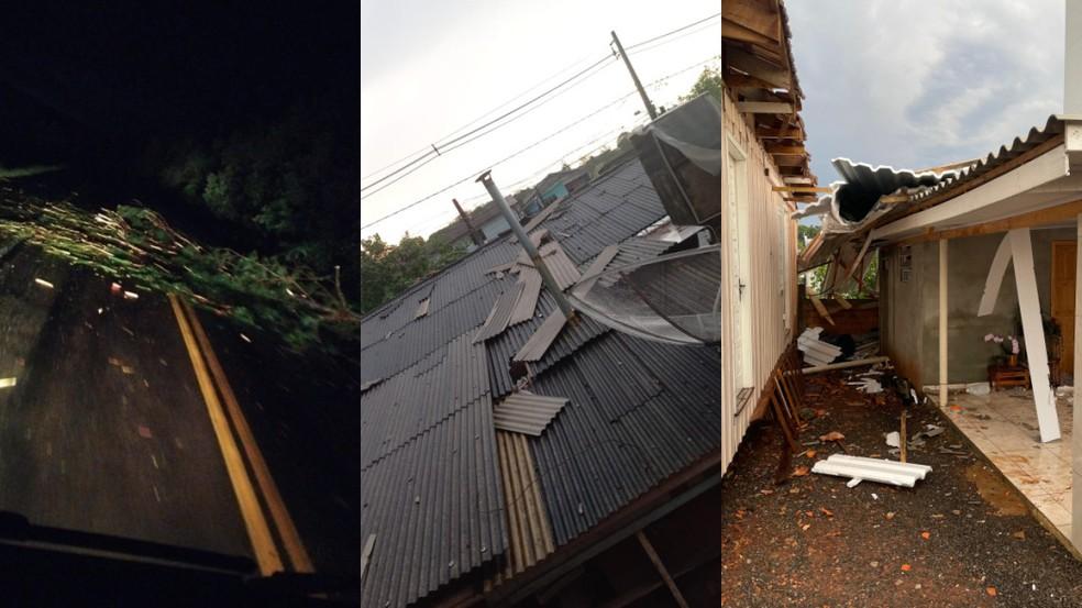 De acordo com a Defesa Civil de Chapecó, 16 residências foram destelhadas no final da tarde de terça no bairro Santo Antônio. Lonas foram distribuídas durante a madrugada. Ao longo da noite, 200 locais ficaram sem energia por conta de placas metálicas atingiram a rede elétrica.