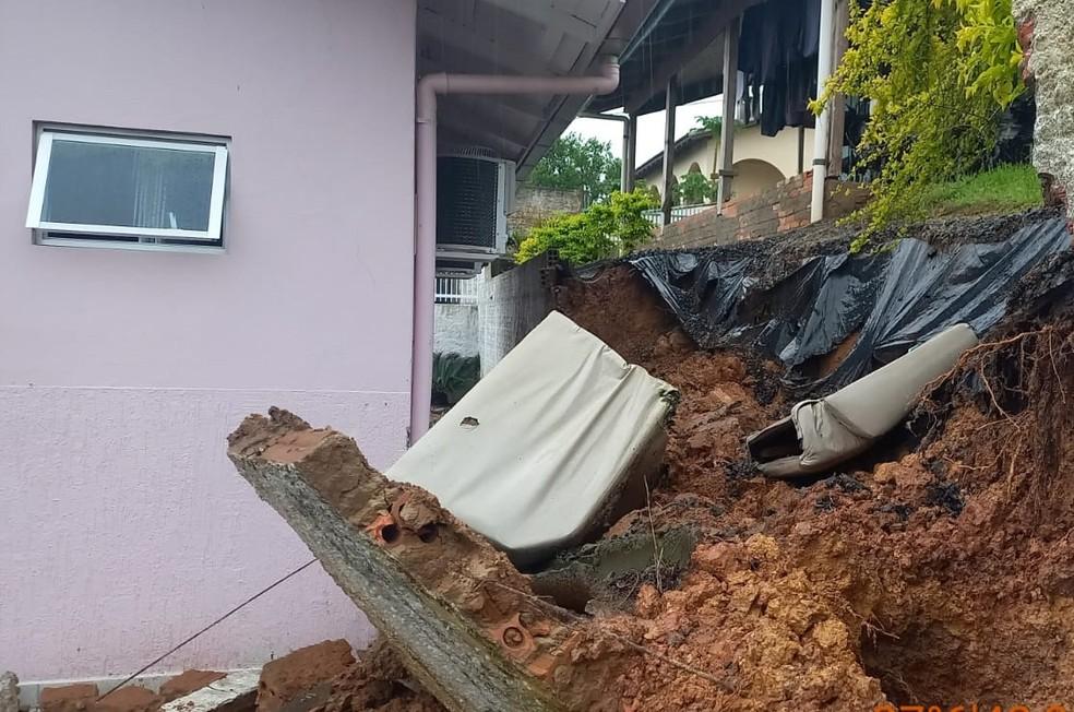 Em Jaraguá do Sul, houve queda de muro, deslizamento de terra e casas foram inundadas.