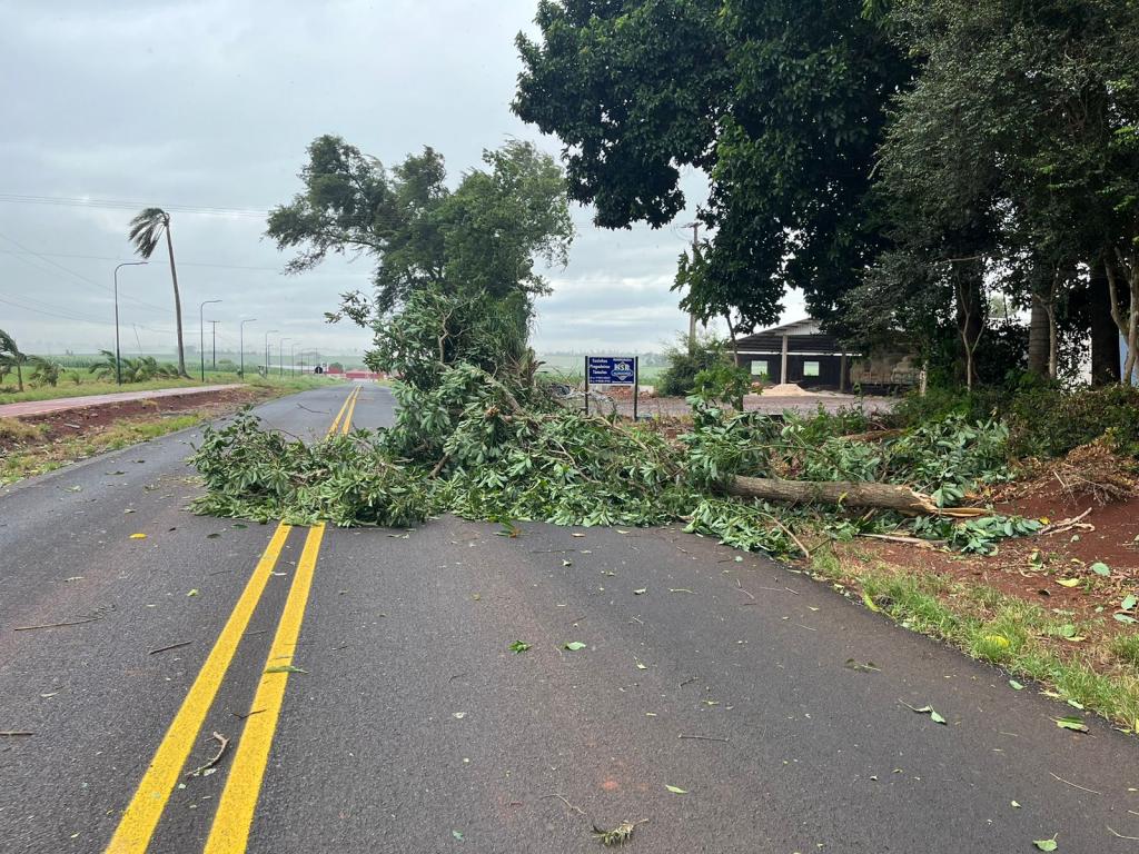 Na saída da Cidade, sentindo à Maripá, um galho também acabou caindo sobre a rodovia.