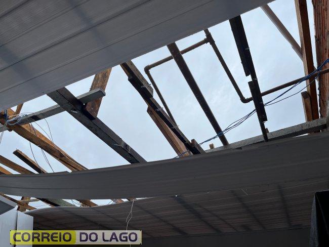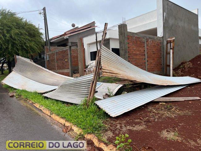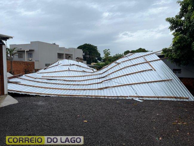 O temporal também provocou destelhamento e queda de árvores em São Miguel do Iguaçu.
