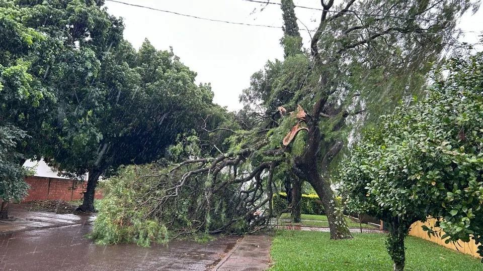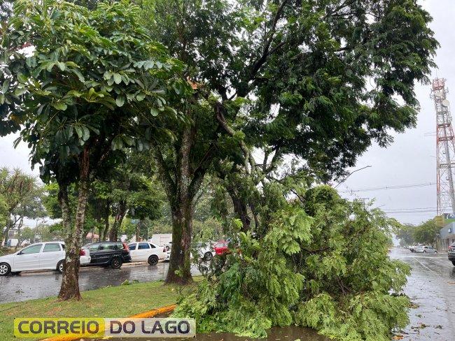 Em Cascavel, galhos causaram obstrução de vias. Mais de 4 mil imóveis estão sem luz.