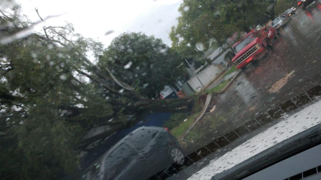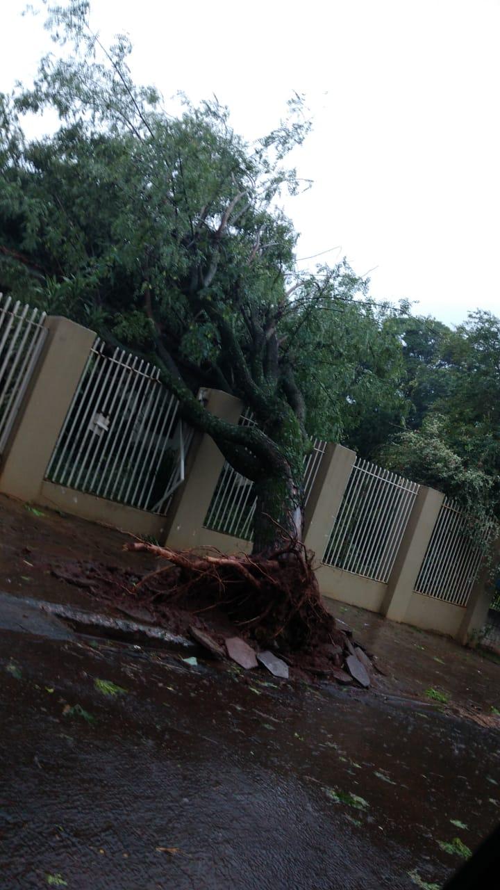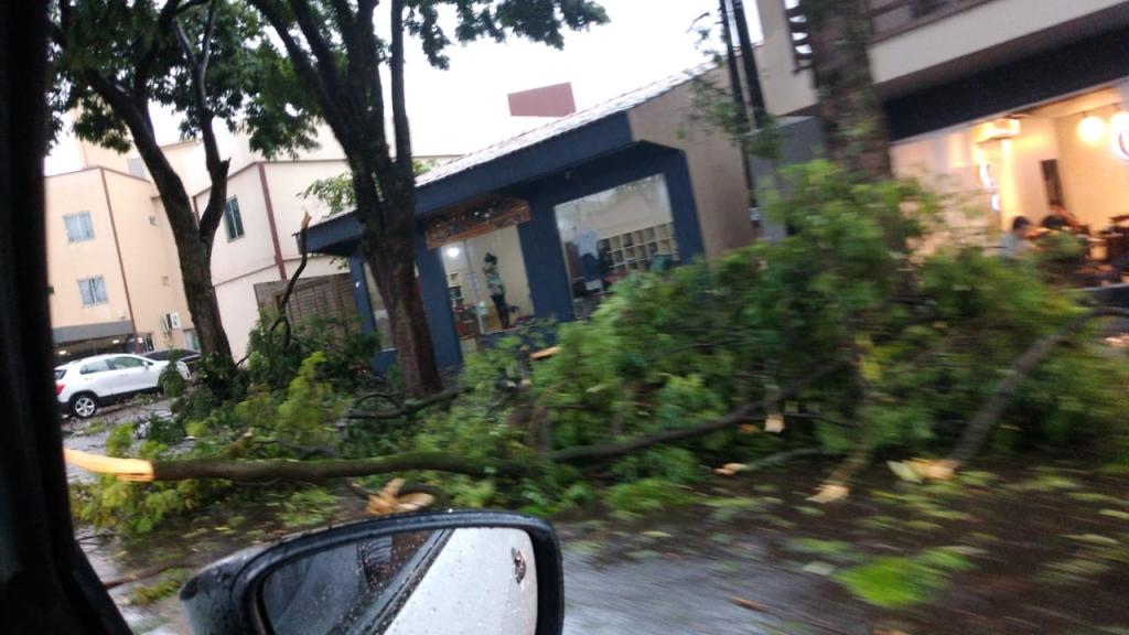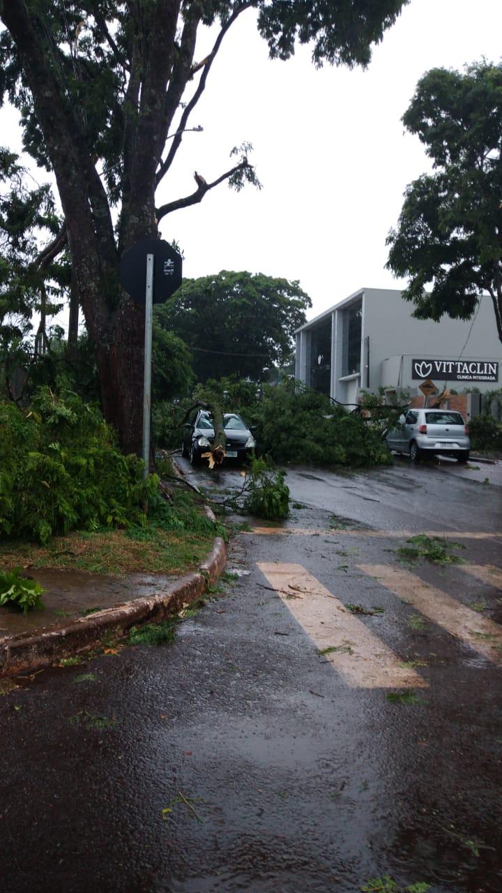 A estação do Simepar registrou rajada de vento de até 70 km/h em Cascavel e diversas árvores caíram na cidade. Não há registro de feridos.