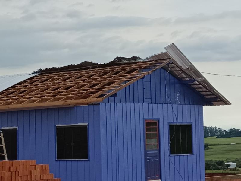 Em uma casa na saída de Mercedes para Arroio Guaçu, parte do telhado foi arrancado com a força dos ventos.