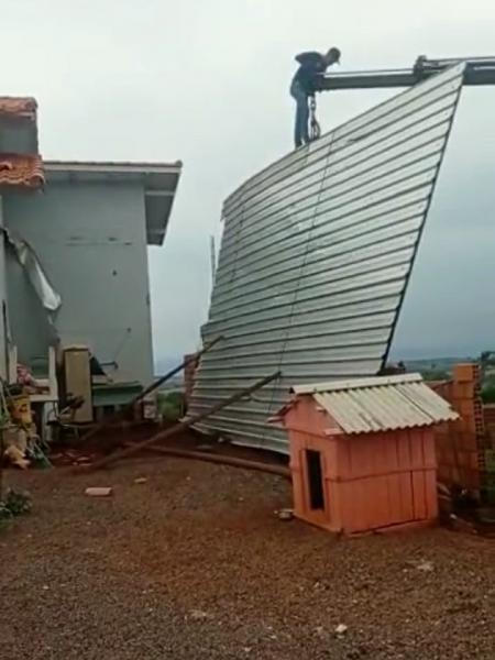 Em outra casa na cidade, o telhado da garagem caiu e atingiu um carro, que foi danificado.