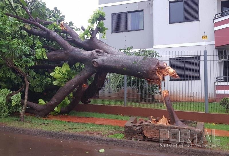 Algumas árvores e muitos galhos quebraram com os ventos, teve relatos também de casas destelhadas.