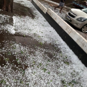 Um temporal de granizo destruiu lavouras de milho e o centro da cidade de Maripá na noite desta sexta-feira (22).