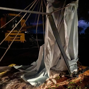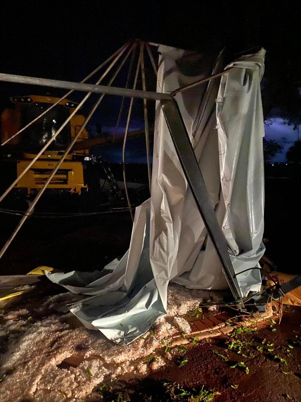 A pista do Arrancadão de Tratores que tinha programação a partir da noite de hoje também ficou danificada, estruturas metálicas ficaram torcidas.