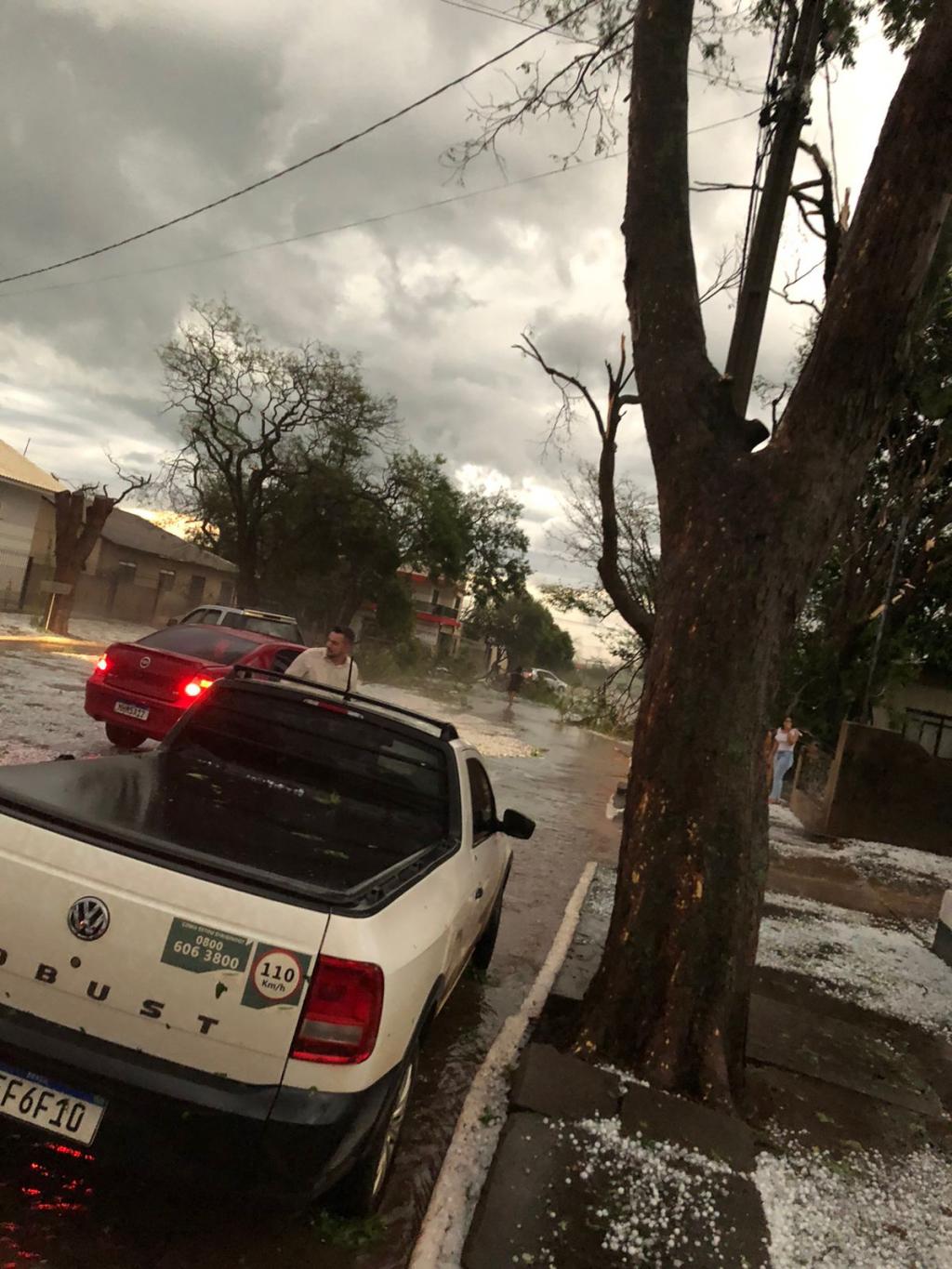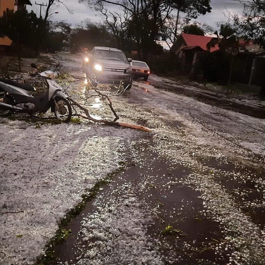 Imagens mostram grande quantidade de granizo na avenida central da cidade após duas horas depois do temporal, o centro da cidade ficou irreconhecível, árvores foram arrancadas, fachadas de comércio danificados, residências tiveram o telhado quebrado, o Amarelão, como é conhecido o parque de exposição da cidade ficou com tendas e expositores completamente danificados. A festa em comemoração ao aniversário do município iniciou na quinta-feira e deveria se estender até o domingo. É muito provável que a programação seja cancelada pelo prefeito Rodrigo Schanoski ainda na manhã de sábado. A meses o município se preparava para a grande festa que tem uma enorme tradição na região.