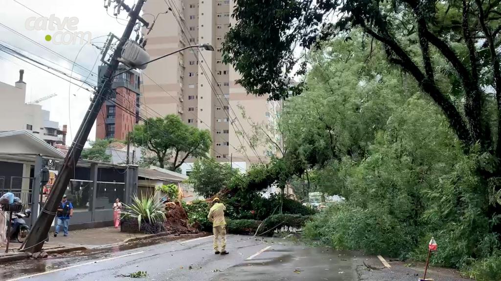 Na rua Mato Grosso, uma árvore de grande porte foi arrancada pela ventania e interditou a via, entre as ruas Vicente Machado e Voluntários da Pátria. Na queda, a árvore caiu sobre os fios de iluminação derrubando postes na região. Casas e comércios ficaram sem energia elétrica. Uma equipe da Copel trabalha para restabelecer o abastecimento.