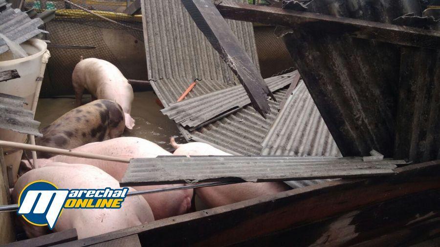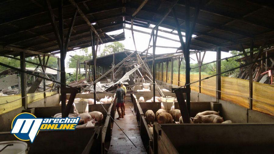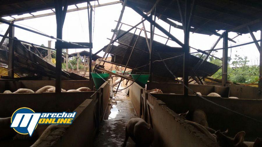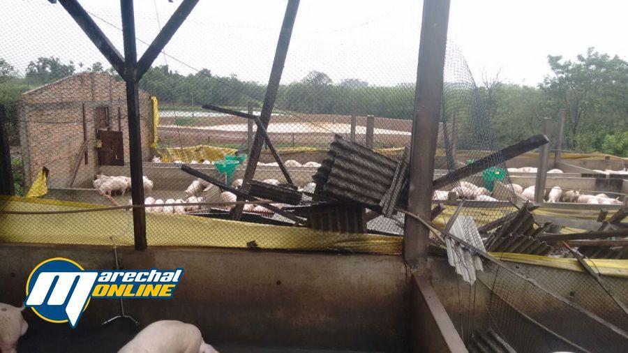 Um temporal atingiu o município de Marechal no início da tarde desta sexta-feira (03), foram registrados estragos em toda a cidade e também nos distritos. Em Iguiporã dois chiqueiros foram destruídos.