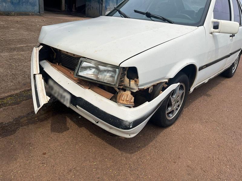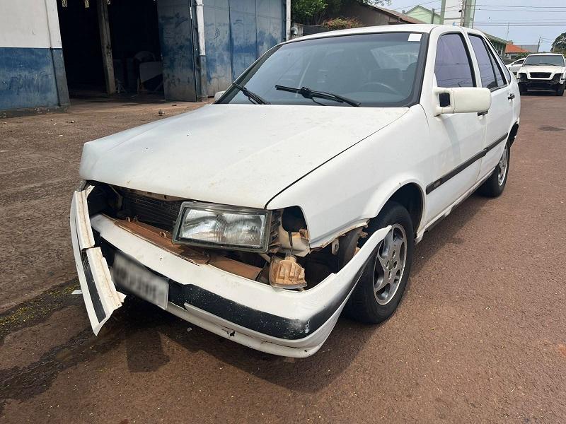 Nossa equipe conseguiu localizar o Tempra e registrou a frente do carro com prejuízos. Não houve feridos.
