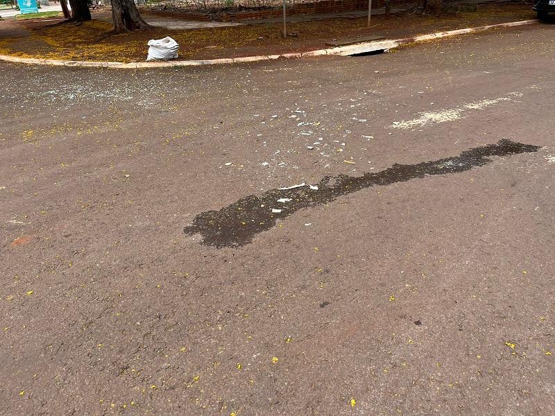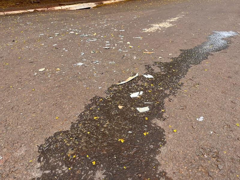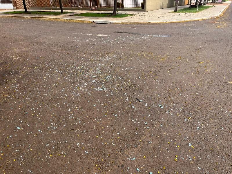 Vidros, provavelmente dos faróis dos carros, ficaram espalhados pelo asfalto.